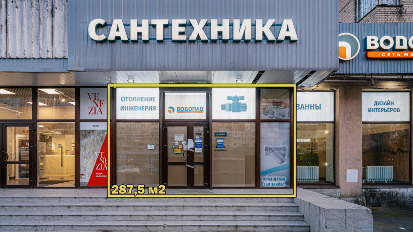 Помещение 287.5 м2. Пepвaя линия, бoльшиe витрины