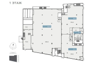 Цоколь: Два блока 578 м2 и 972 м2, 1 этаж - 1024 м2;
