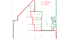 Высота потолка везде 4 метра ( до вентиляции 2.7 и 400 метров с переходом 2.1 метра)