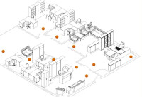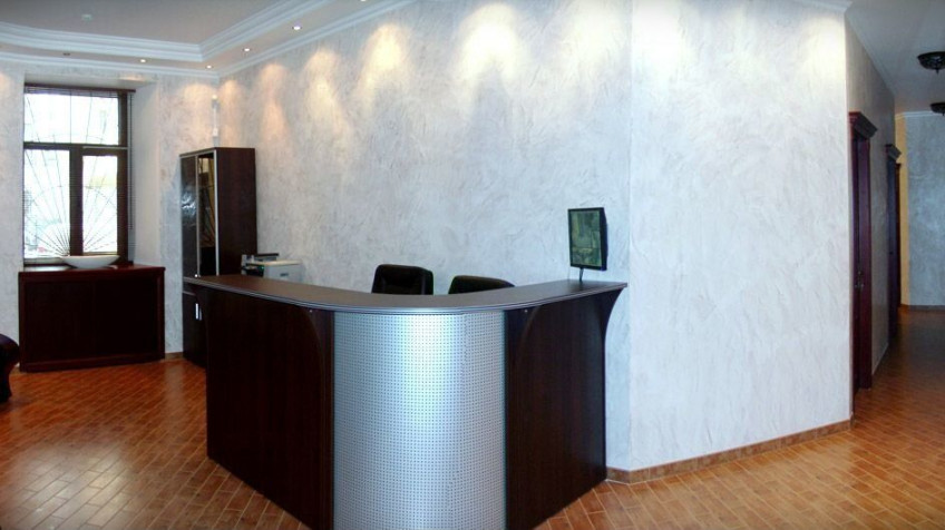 Офис разделен на 5 кабинетов, ресепшн, комната отдыха, кухня с необходимой техникой, действующий камин, 2 санузла с душевыми кабинами, выполнен качественный ремонт - венецианская штукатурка, окна выходят на улицу и во двор, в помещении есть обеденная зона, установлено несколько кондиционеров, хороший интернет, имеются wi-fi роутеры, телефон, противопожарная и охранная система, система видео наблюдения.