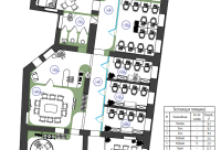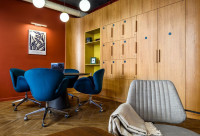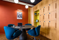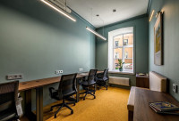 • Современная переговорная на 10 человек, оснащенная столом для переговоров с розеточным блоком, креслами, TВ-панелью с системой беспроводной трансляции данных;