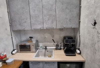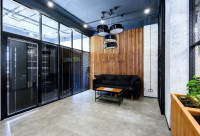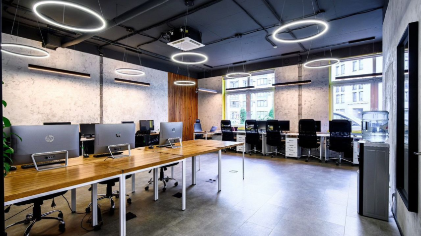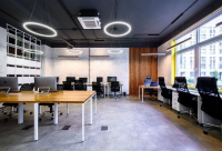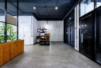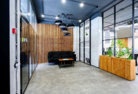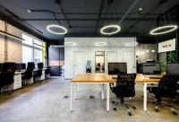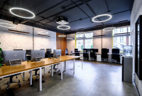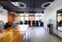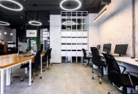• Помещение состоит из open space, разделённого на 20 рабочих мест и зоны для гостей, так же есть переговорная на 8 человек, два санузла, и кухня.