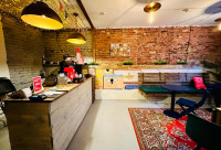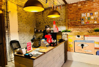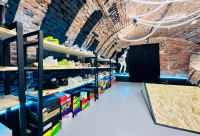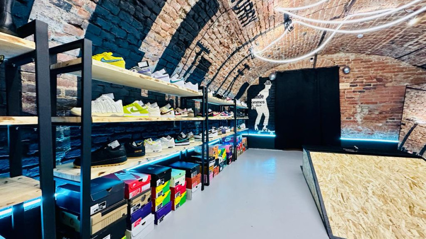• Поделено на нескольких арендаторов(магазин кроссовок и кофейня);