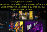 • Арендатор: сеть киберспортивных клубов и арен Colizeum.