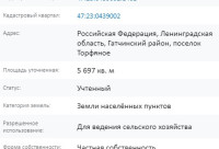 •  Кадастровый номер участка 47:23:0439002:1402;
