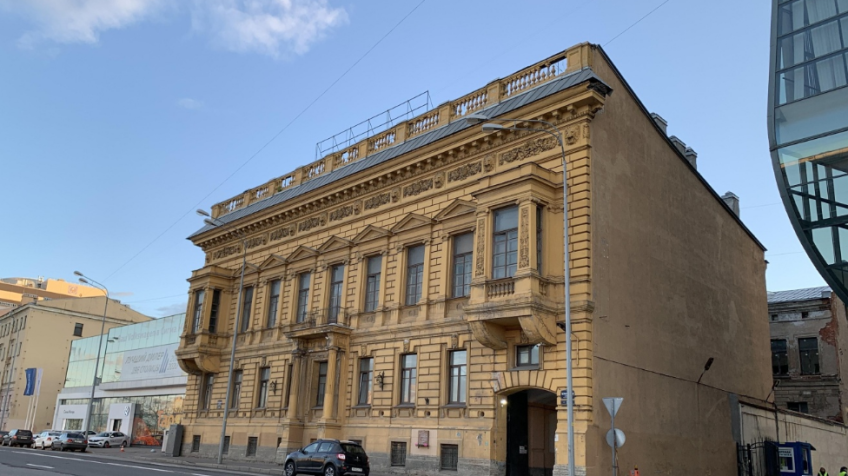 мастеров петербургского модерна. Стены главного фасада обработаны рустом.;
